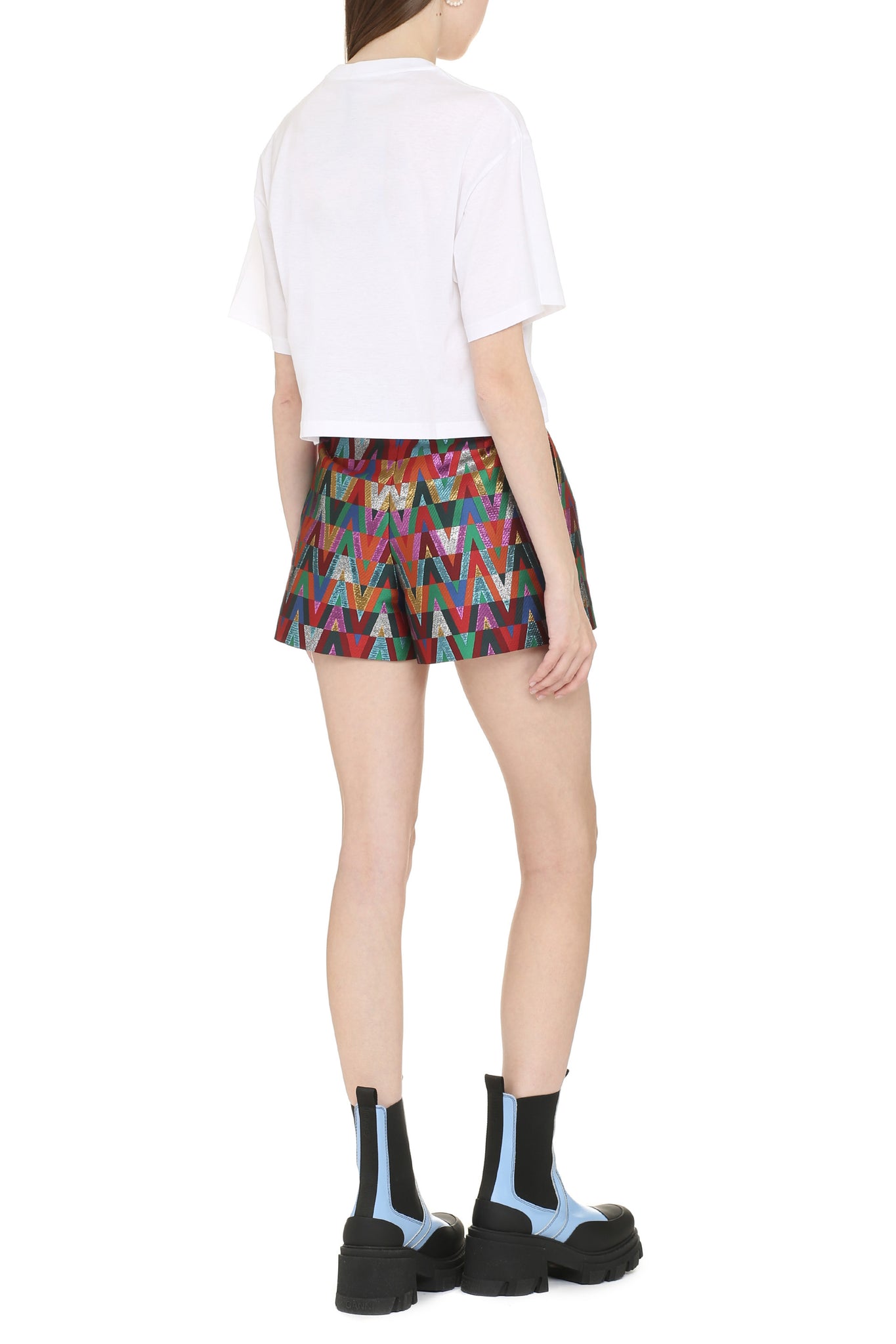 Embroidered cotton cropped T-shirt